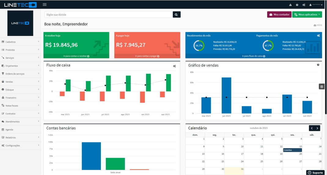 Através dos módulos financeiros, você consegue acompanhar o crescimento da sua empresa. Gerencie o seu fluxo de caixa, controle os pagamentos e recebimentos e emita boletos quando necessário.
